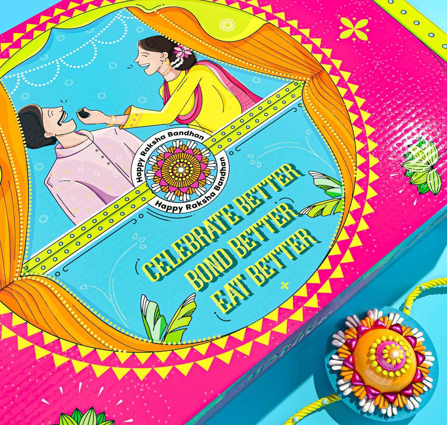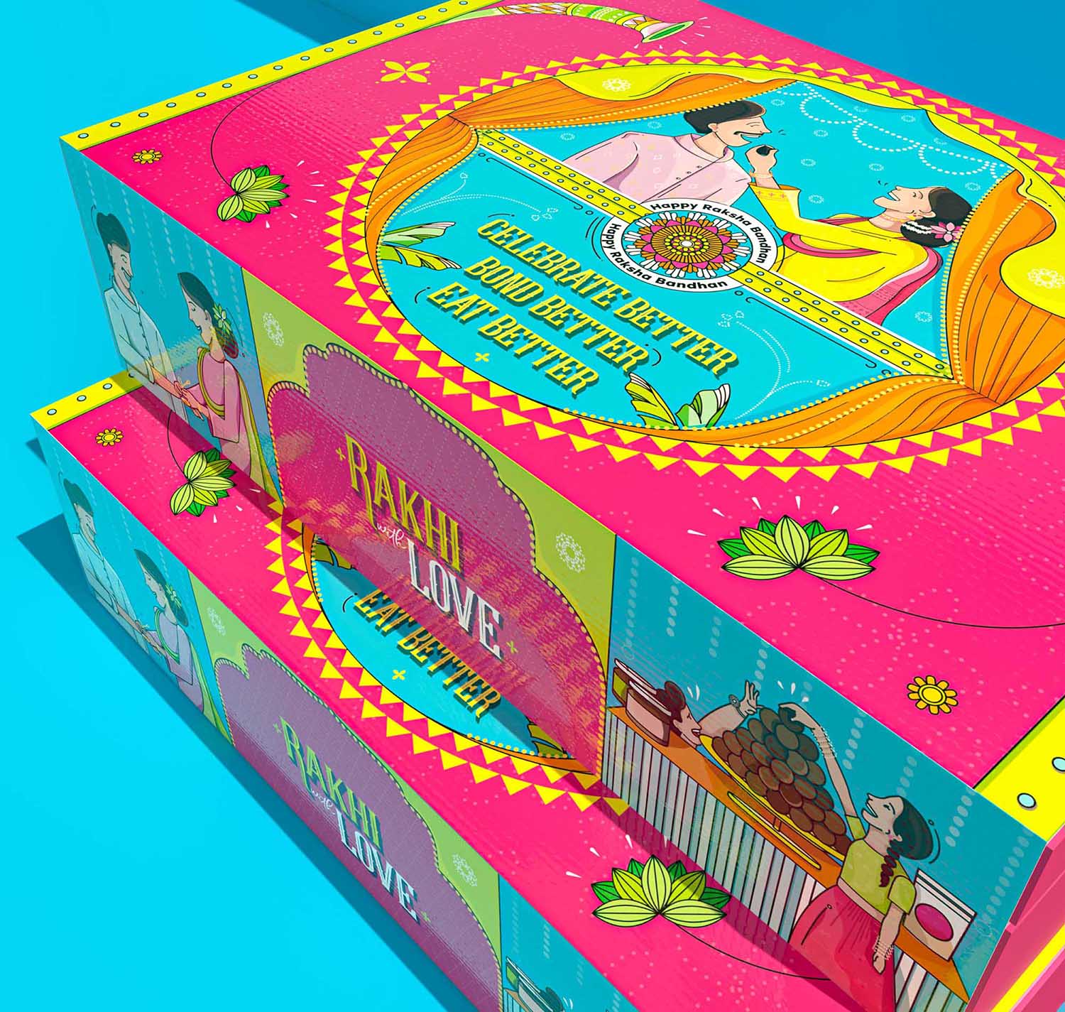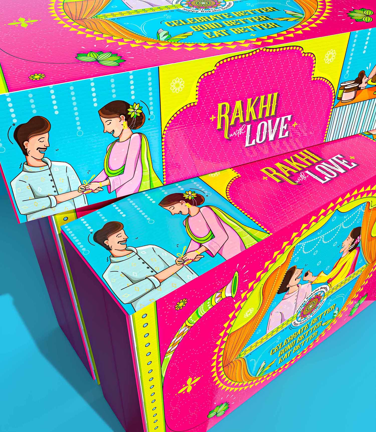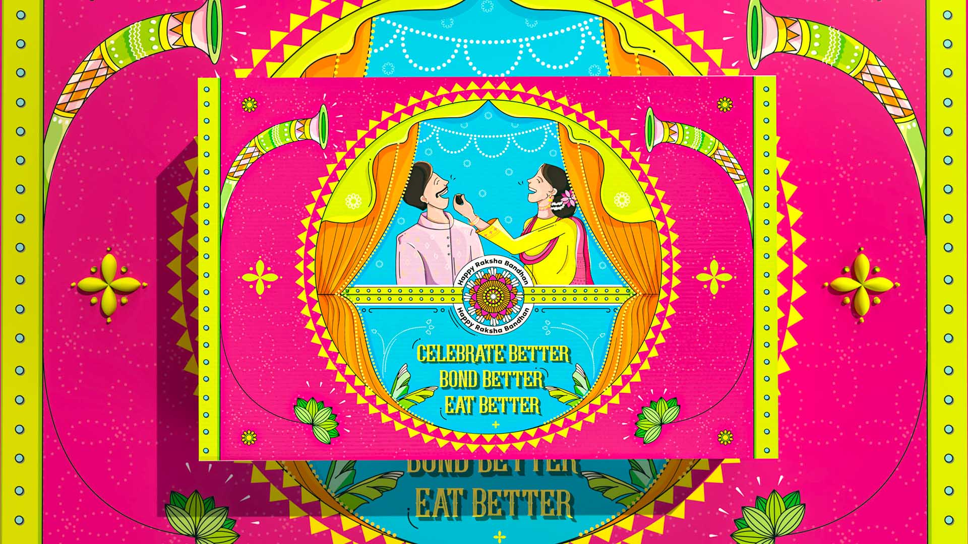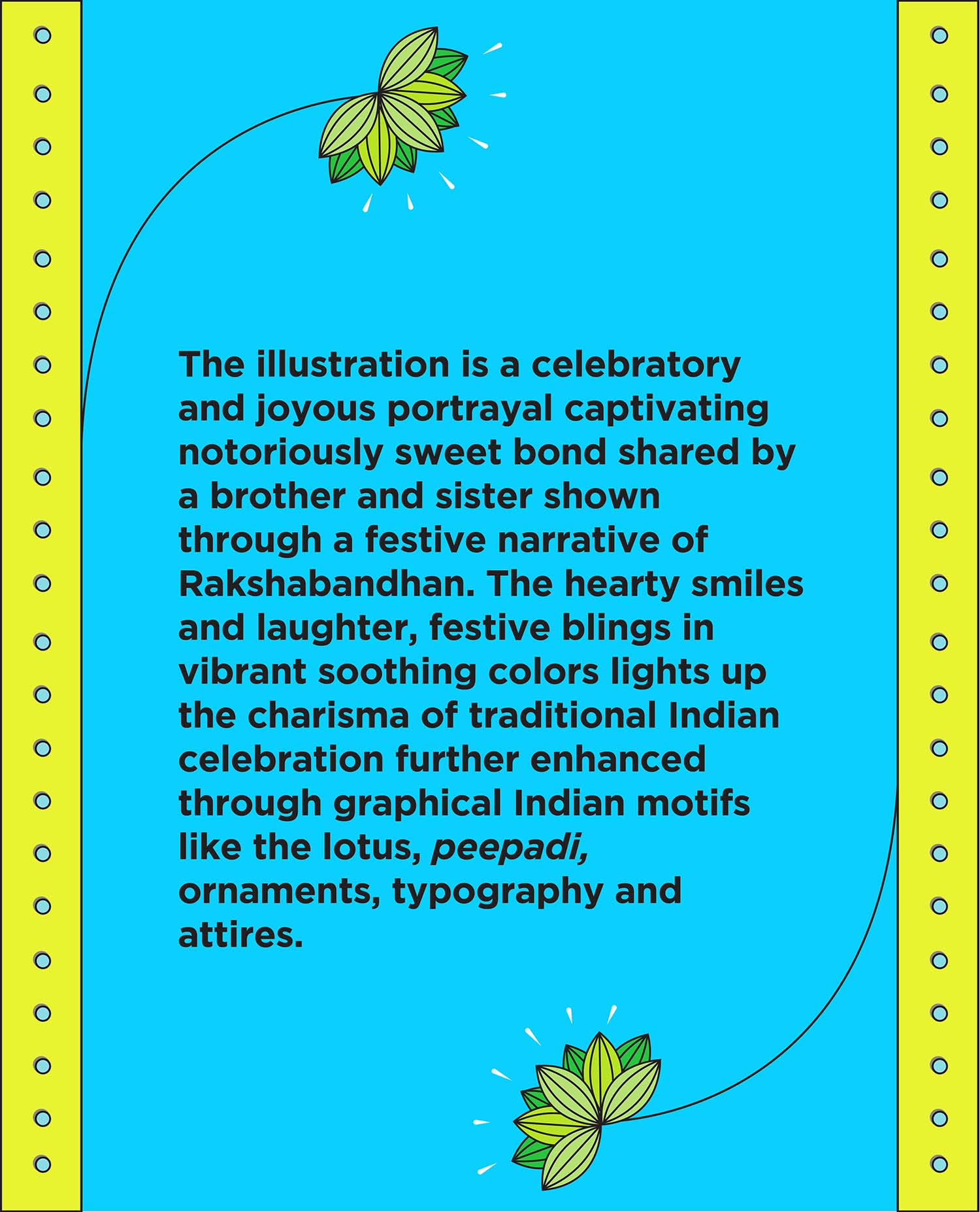 Created a visually heartfelt and emotive illustration with vibrant hues and festive cheer. A salient parallel was drawn between the brand products and the sweet bond shared by siblings, depicting the true spirit of Rakhi.